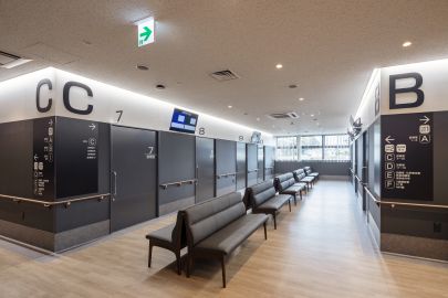 病院の外来フロアは、初診・再診の通院患者をはじめ、CT・MRI・エコーなどの高度検査、各種処置、