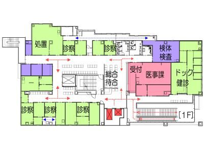 行き交い、院内で最も人の出入りが多いエリアになります。また、患者や家族だけでなく、検体搬送や医療スタッフの移動も頻繁に行われます。