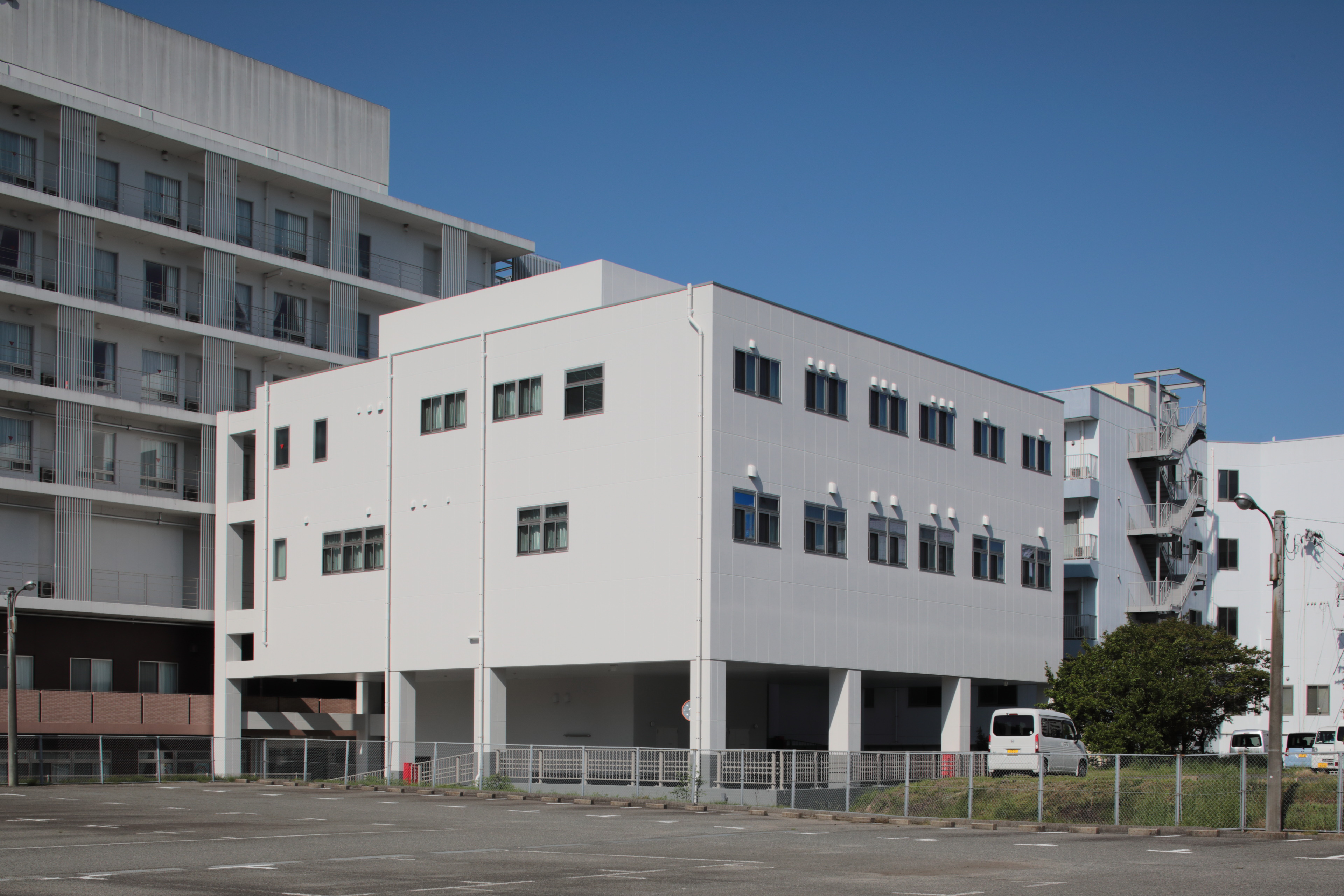 病院の裏手にあった職員駐車スペースを活用し、3階建ての計画をしています。