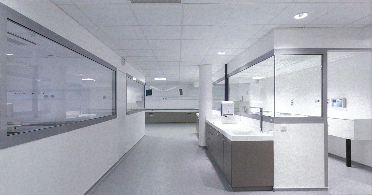 これらの透析室のベッド配分は4床の倍数で計画されており、それぞれ透析患者4名に対して、スタッフ1名の割合でスタッフ配置が決まっており、それぞれの透析室にはガラス張りのスタッフステーションが併設されています。各スタッフの担当区分が明確になっているプランです。