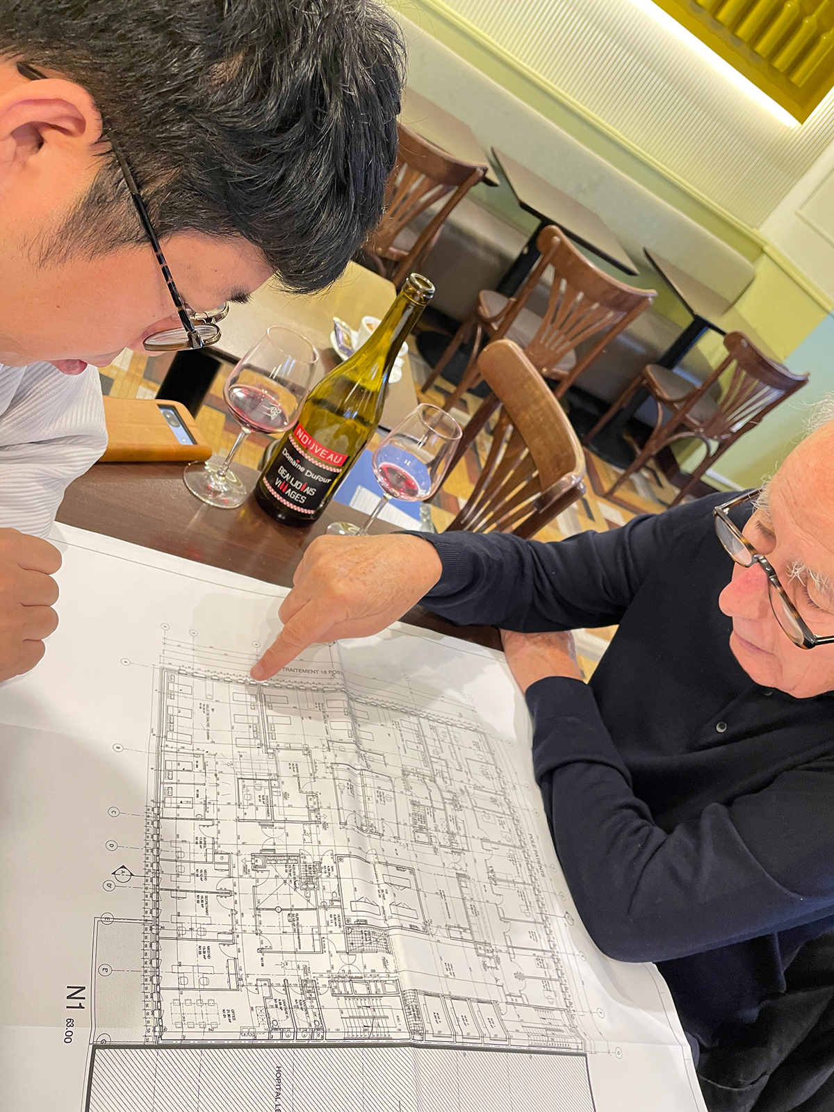 フランスのパリで、日本とフランスの透析施設についてディスカッションしてきました。お相手の建築家 Mr. Pasca Beauはフランスで多くの医療施設を設計しており、ご自身が設計された透析センター(L’AURA Paris Plaisance)について、図面を見せてもらいながら、それぞれの国の透析施設の違いについて議論しました。